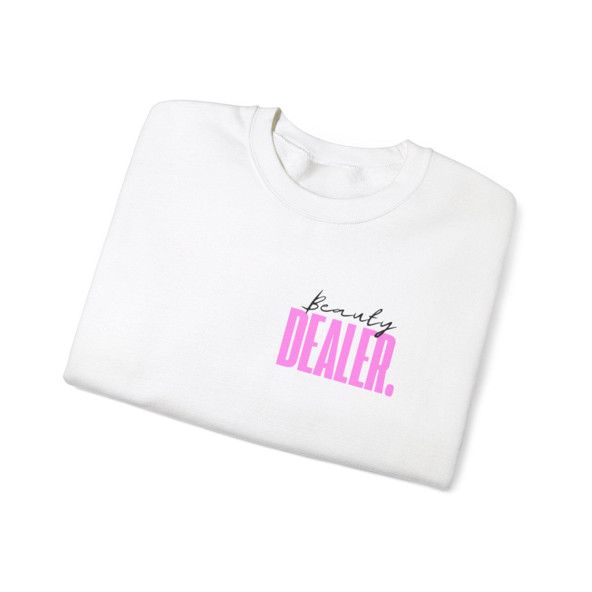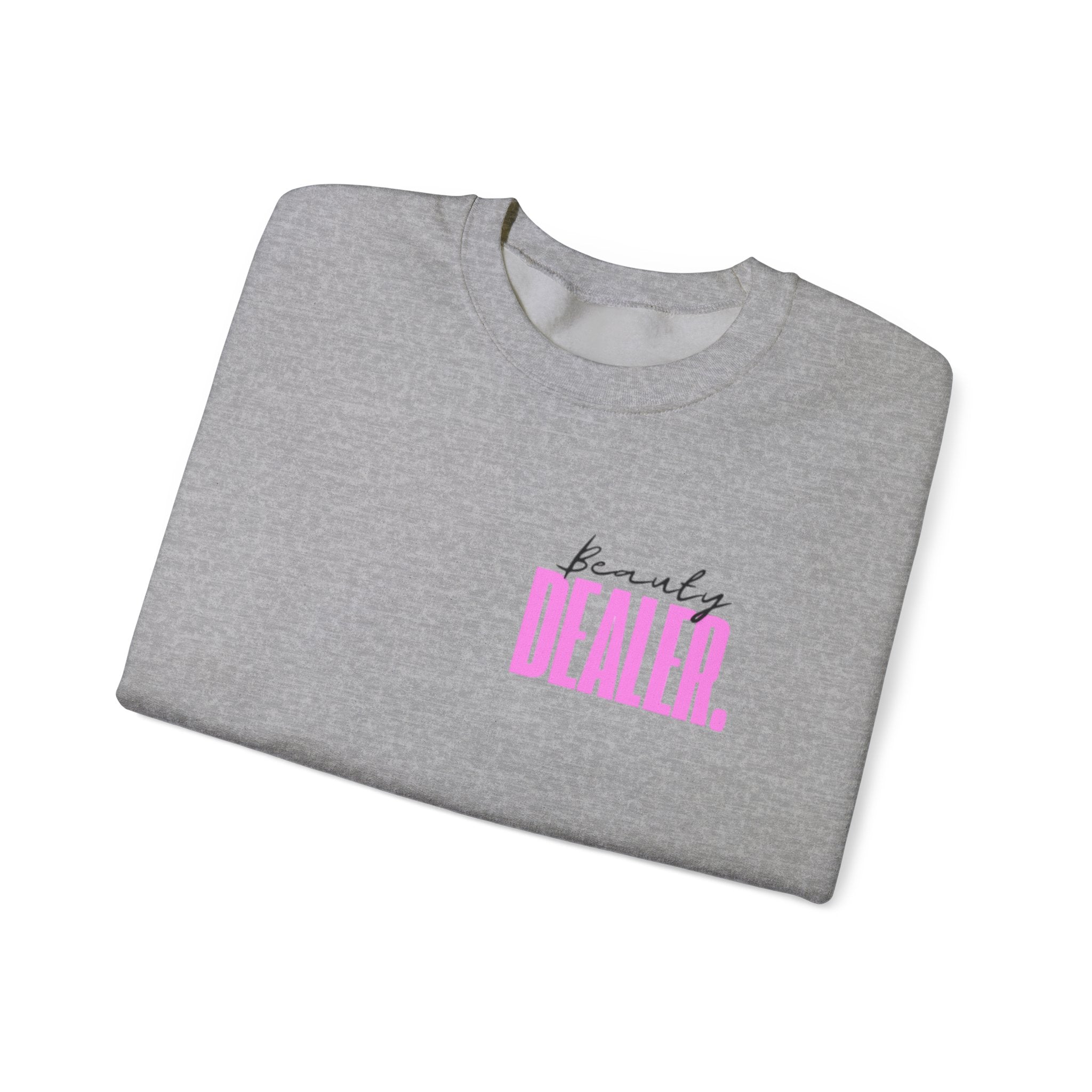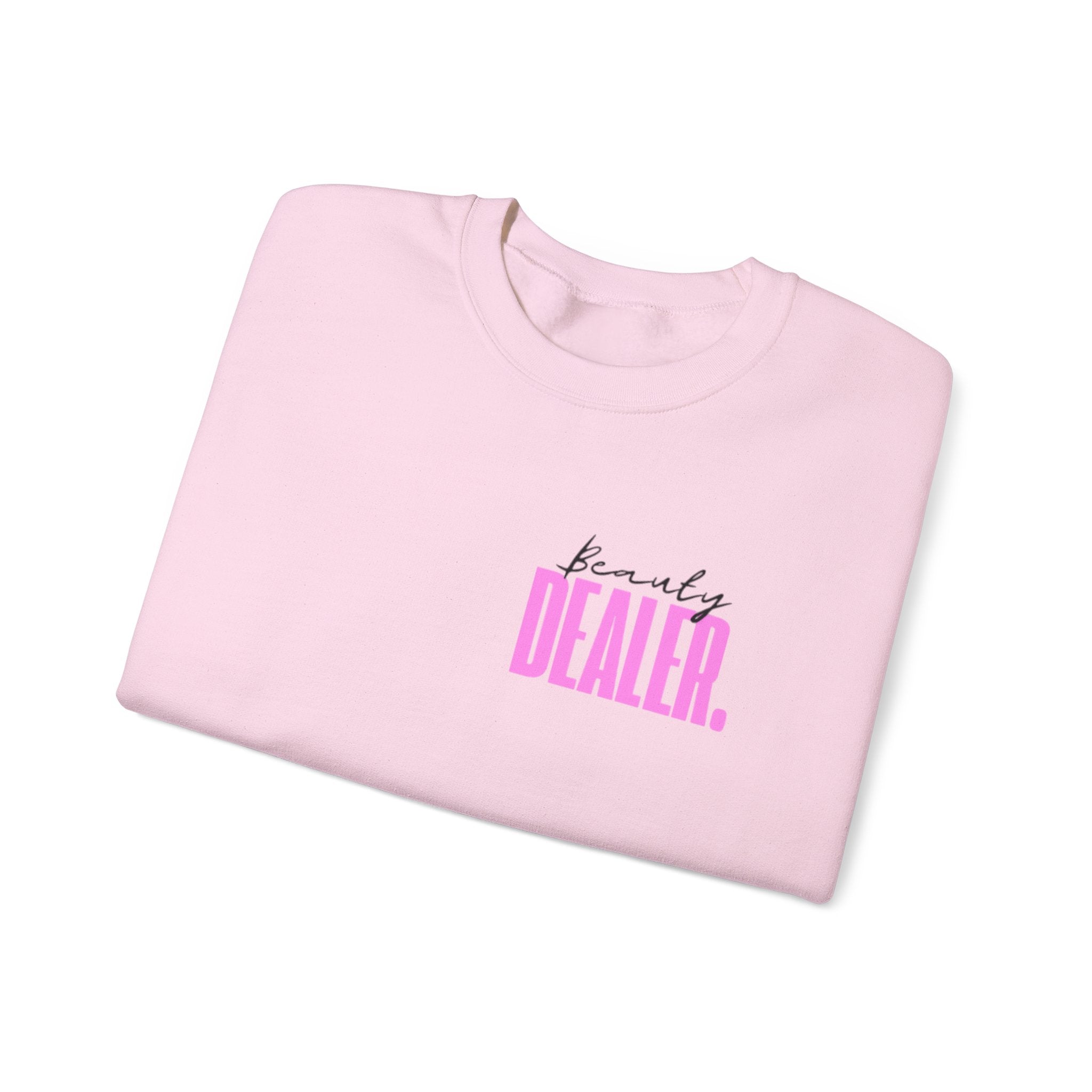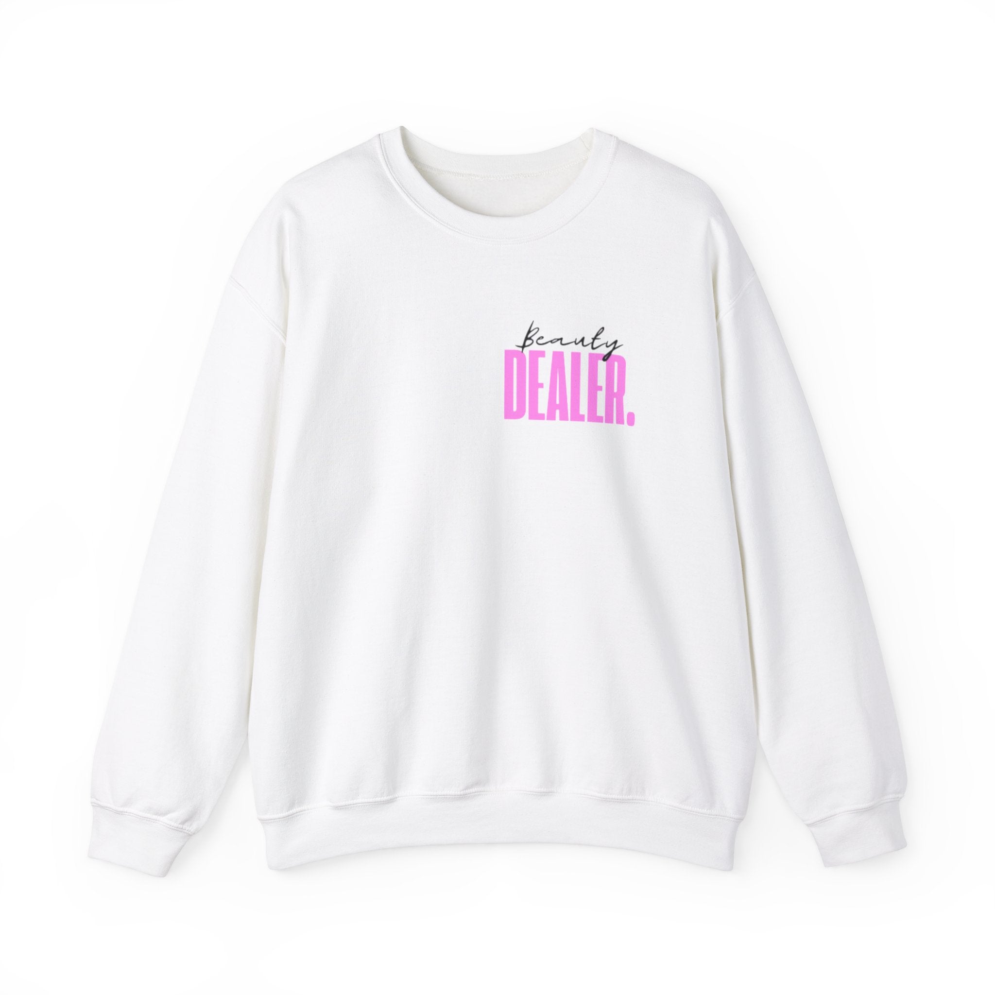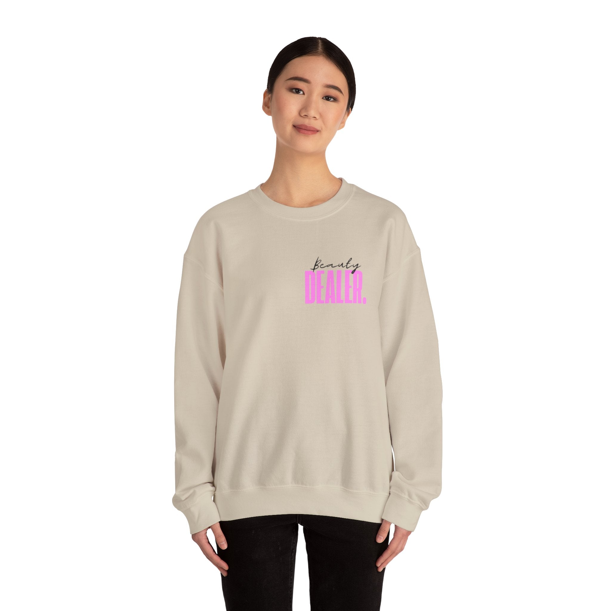 In Honor of October being Breast Cancer awareness month Step into comfort and style with the BEAUTY DEALER PINK! Crewneck Sweatshirt a unisex essential that blends luxury with everyday ease. Crafted from a premium cotton-poly blend, this sweatshirt keeps you cozy while ensuring your look stays flawless.